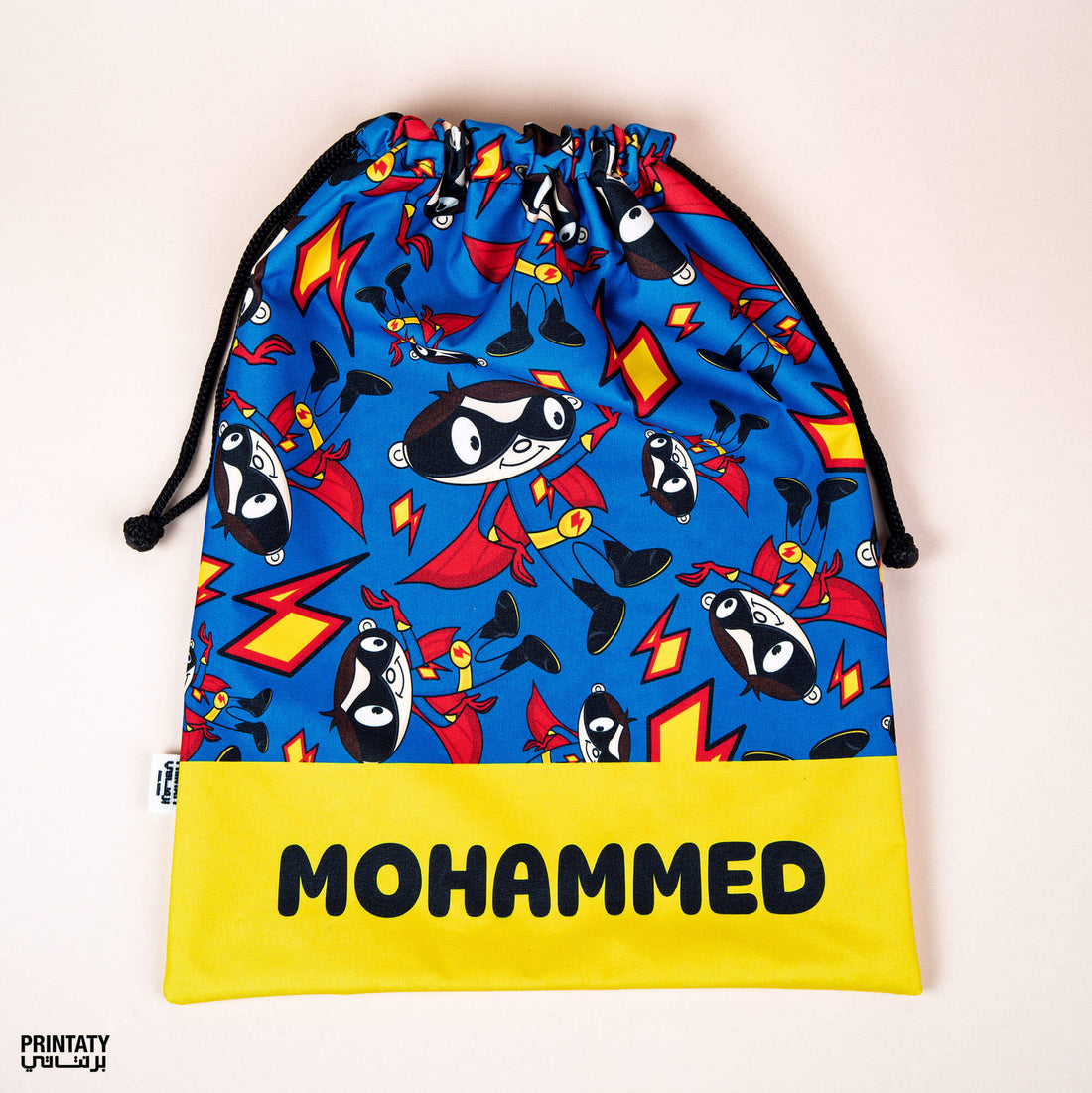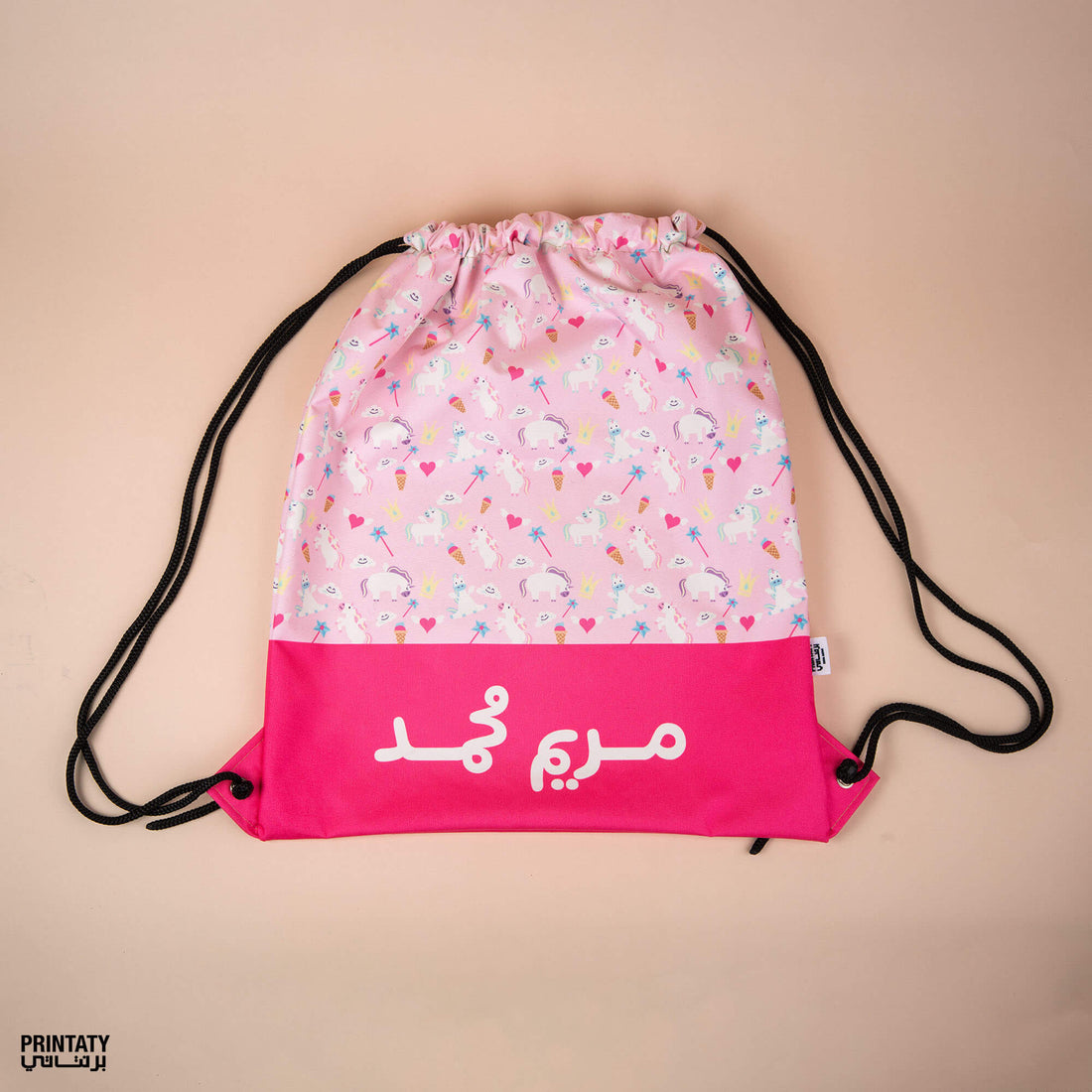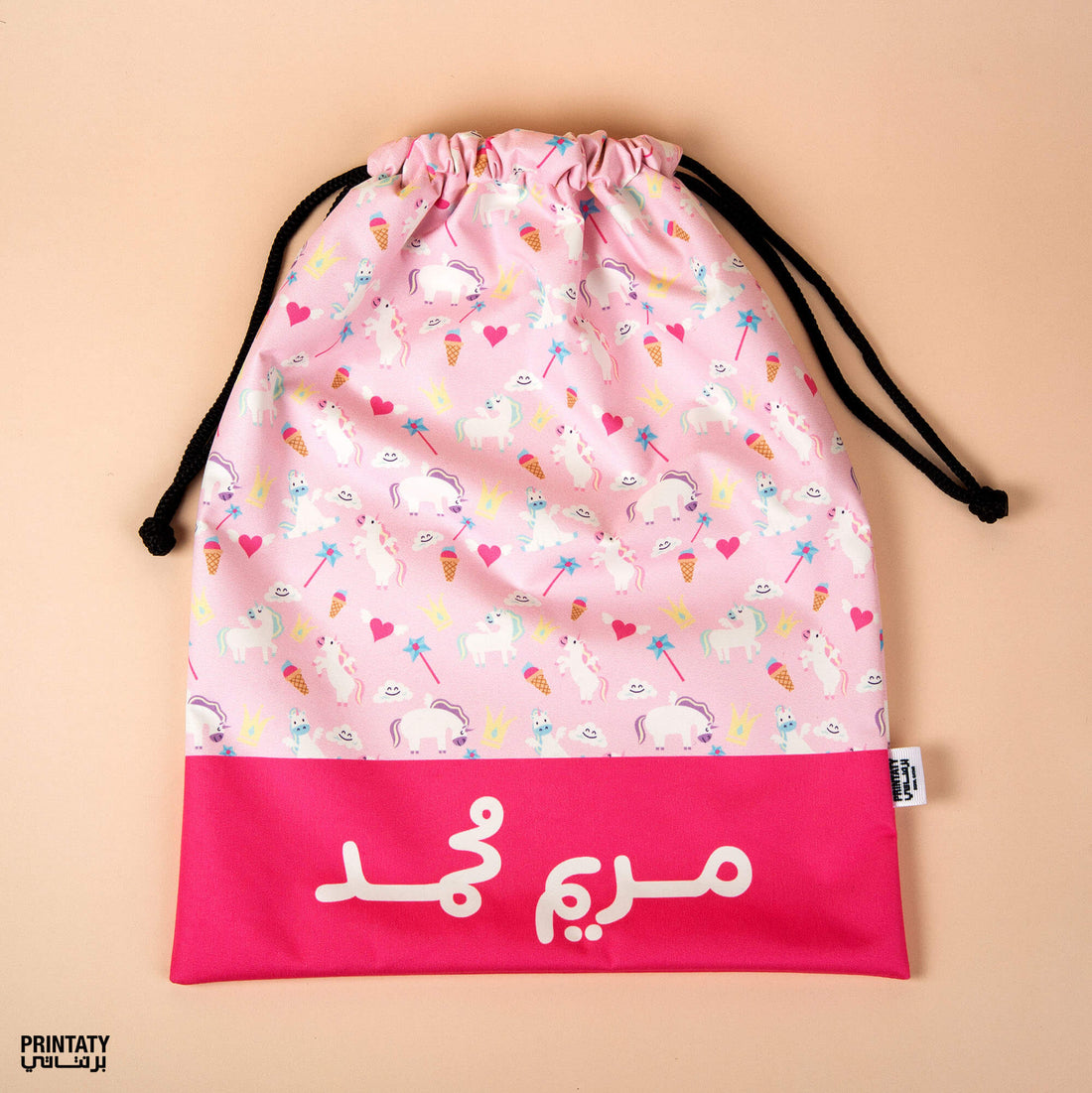 Drawstring bag suitable for extra clothes with name print