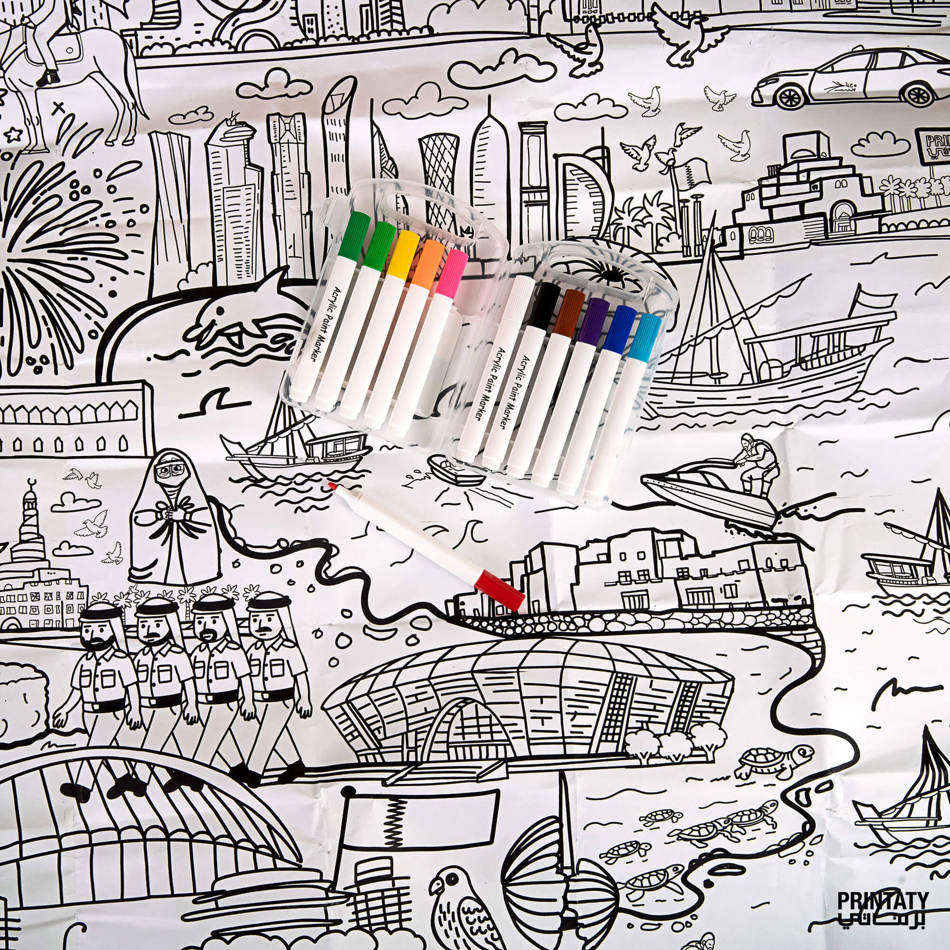 Children's activity: Giant coloring poster featuring Qatari landmarks and colors