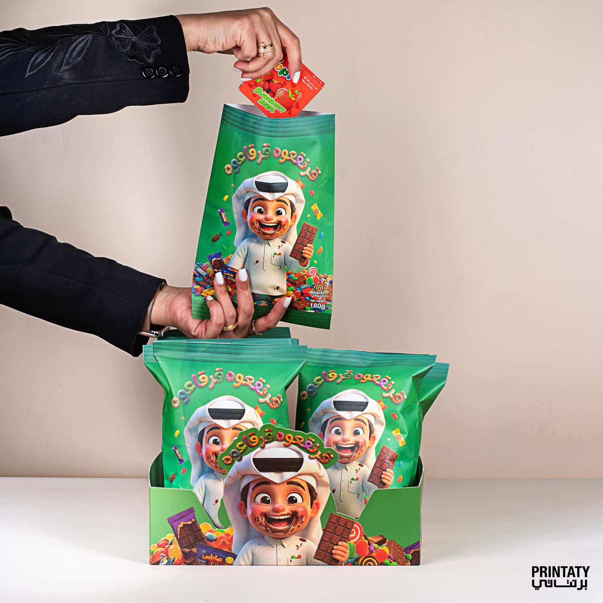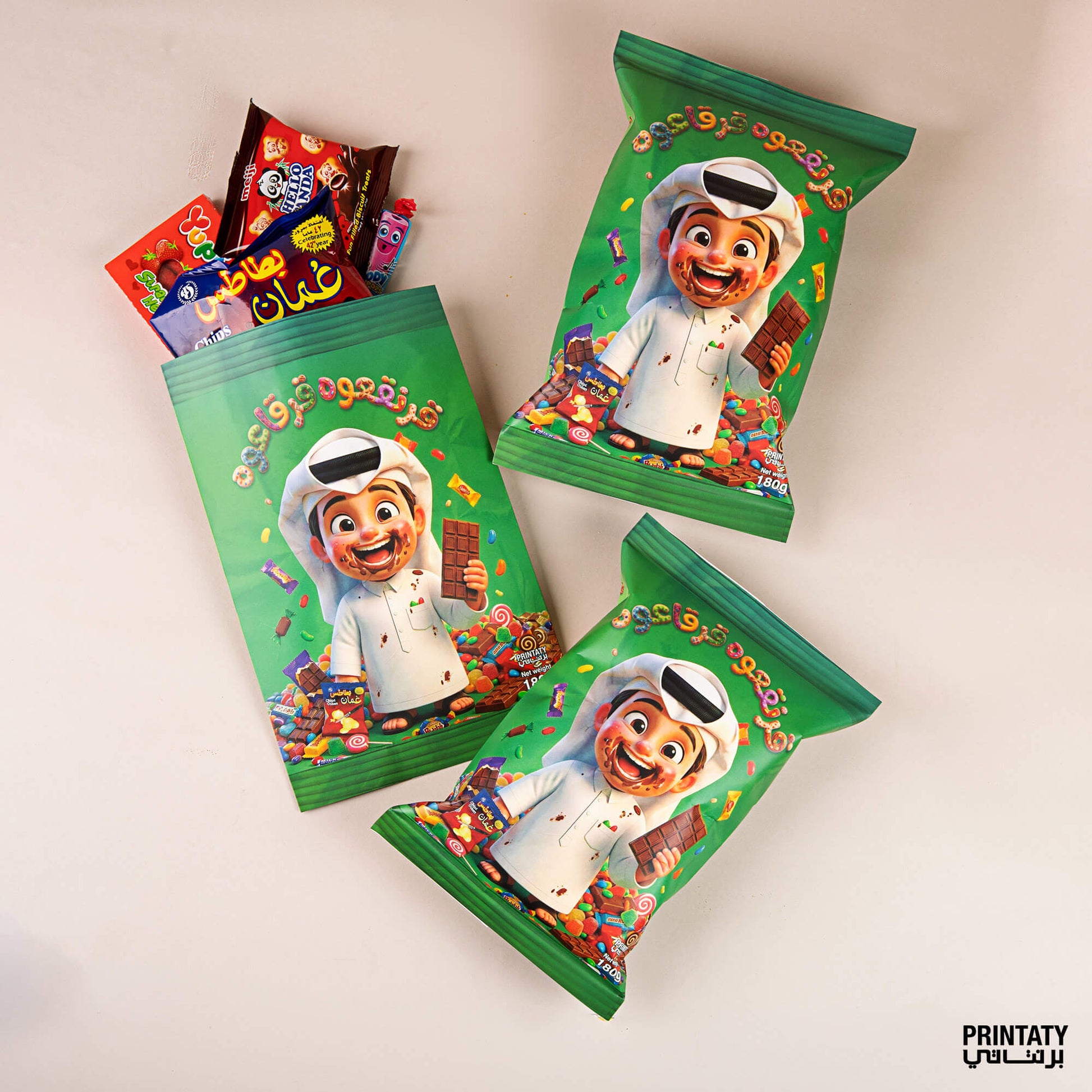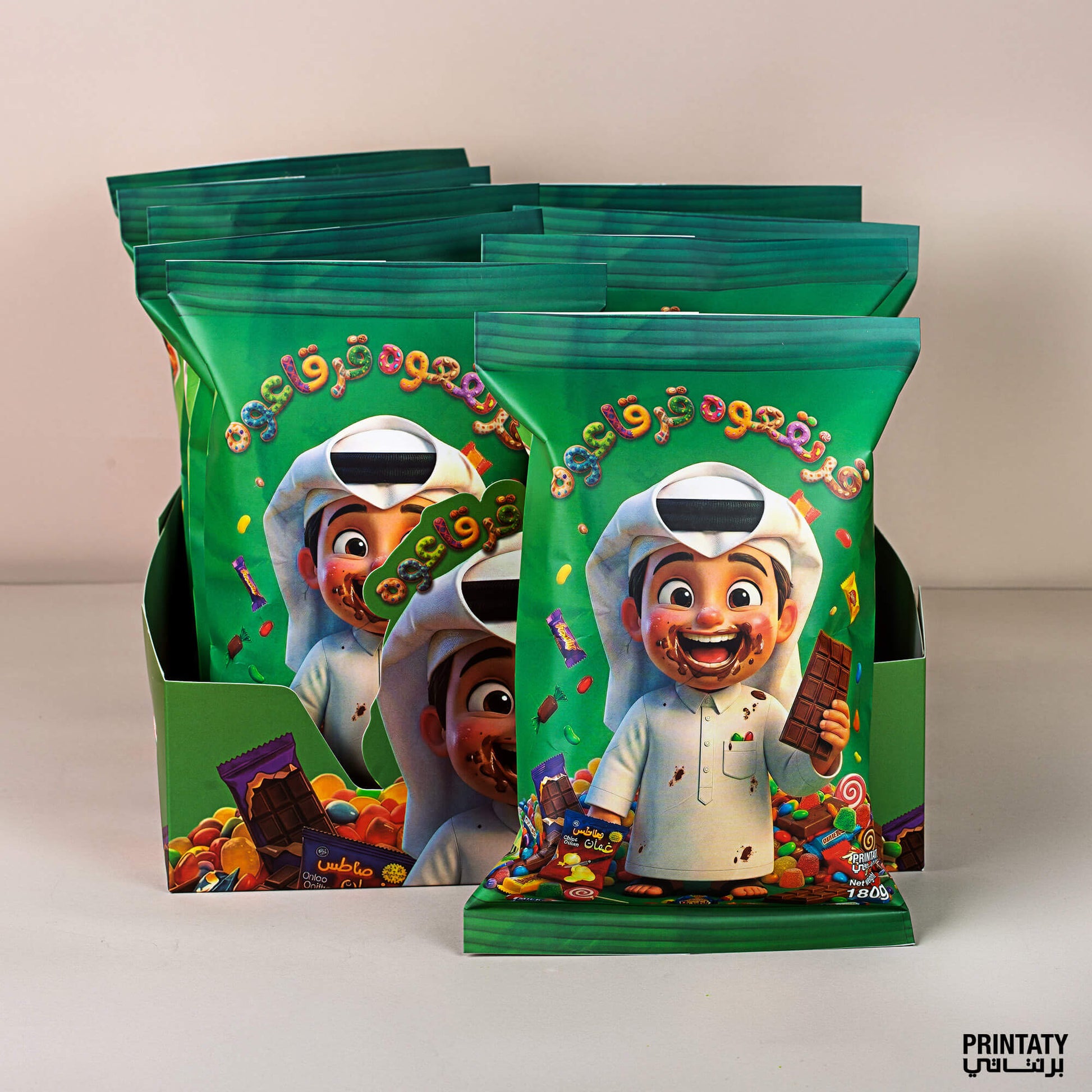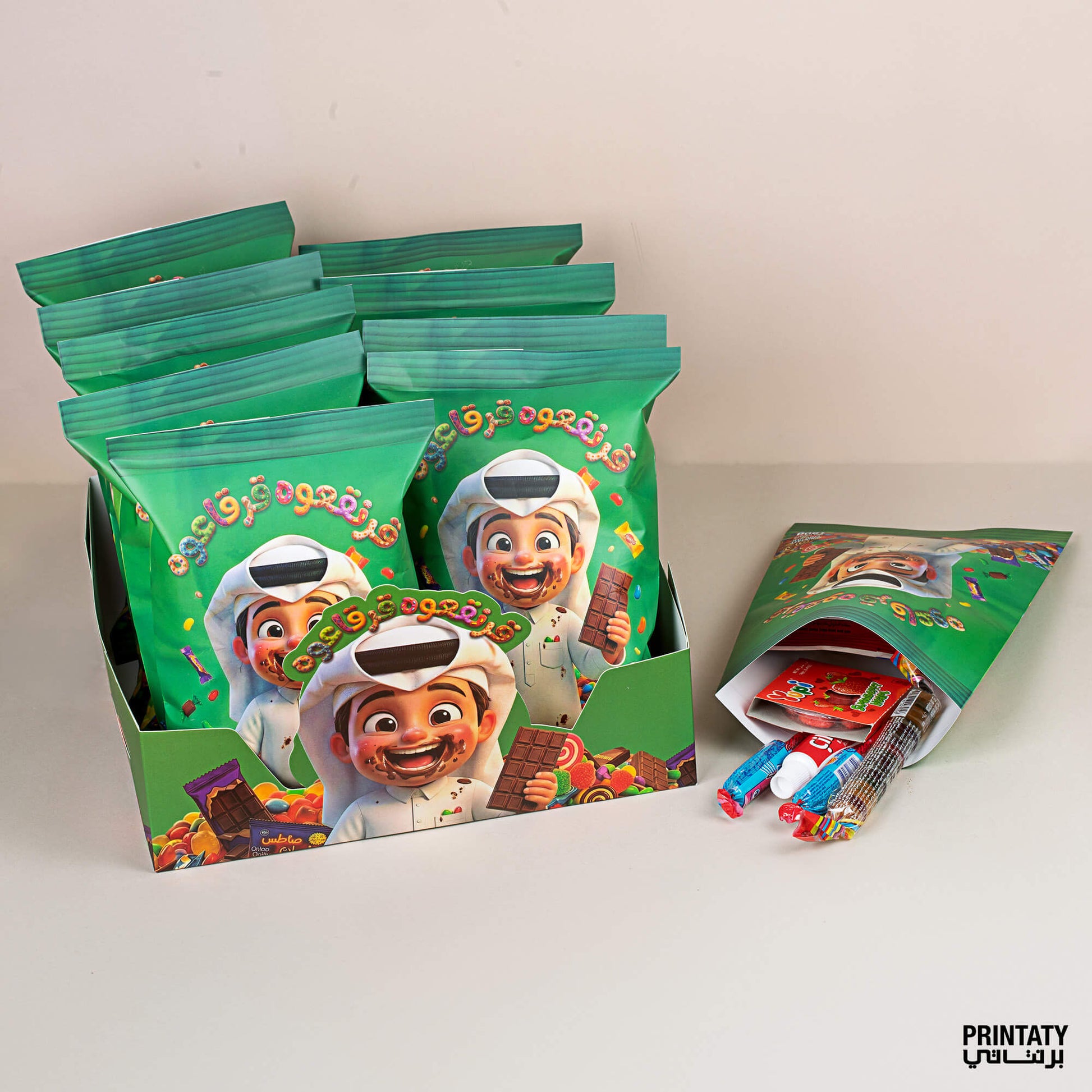 قرنقعوه :آكياس توزيعات الولد (10 أكياس) مع علبة كبيرة