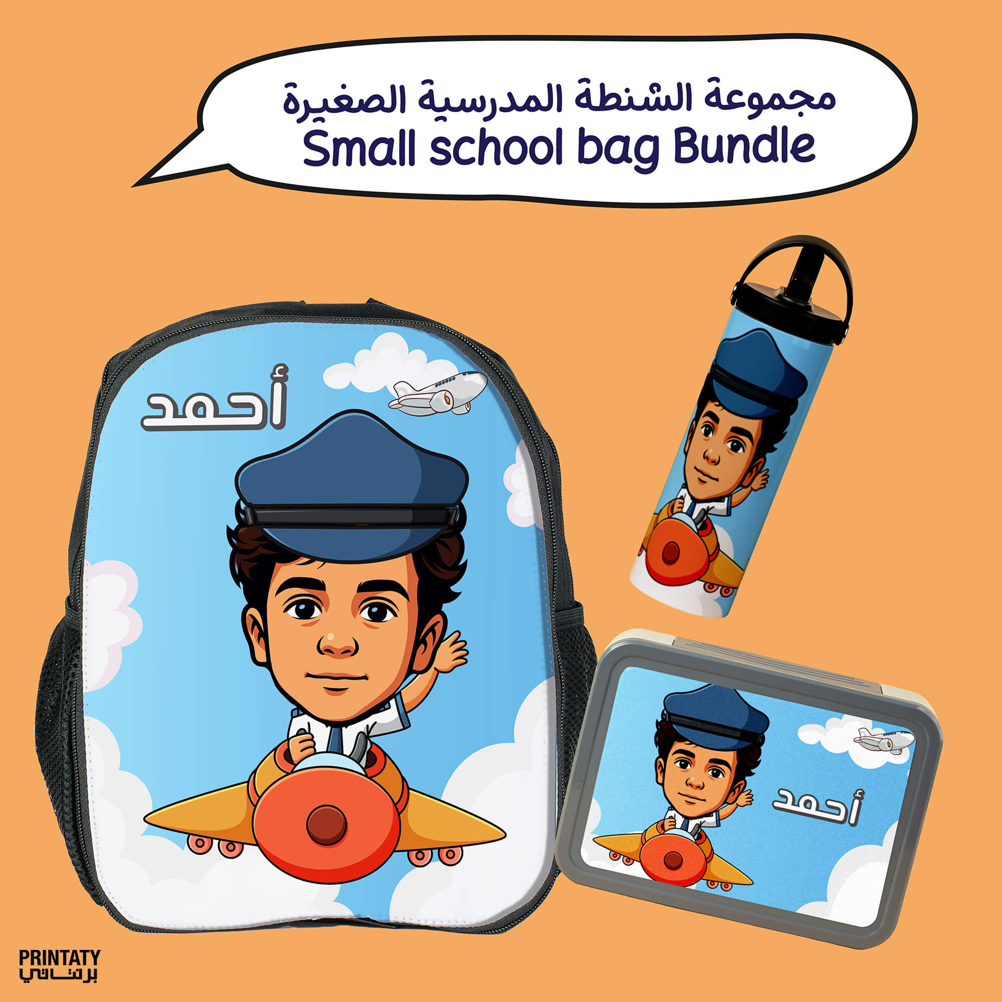 مجموعة الشنط المدرسية الصغيرة مناسبة للسنوات المبكرة تحويل صورة الطفل لصورة كرتونية مكونة من 3 قطع