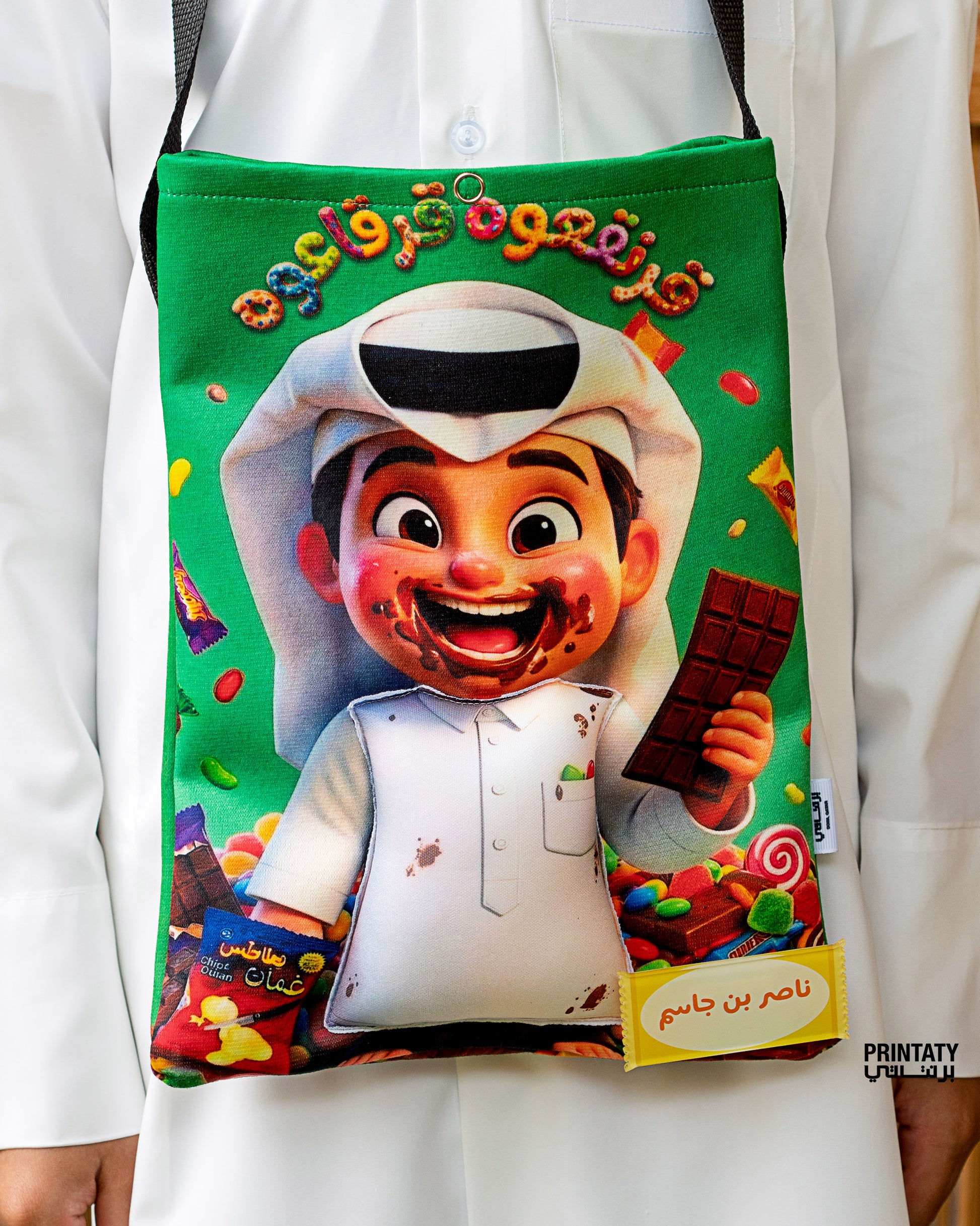 شنطة قرنقعوه 2026 أولاد مع طباعة الاسم وأغنية القرنقعوه