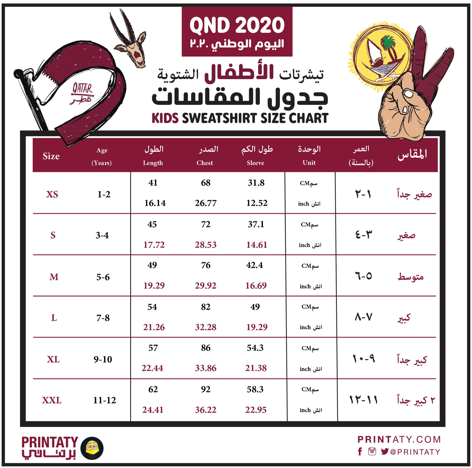 - جدول المقاسات مرفق