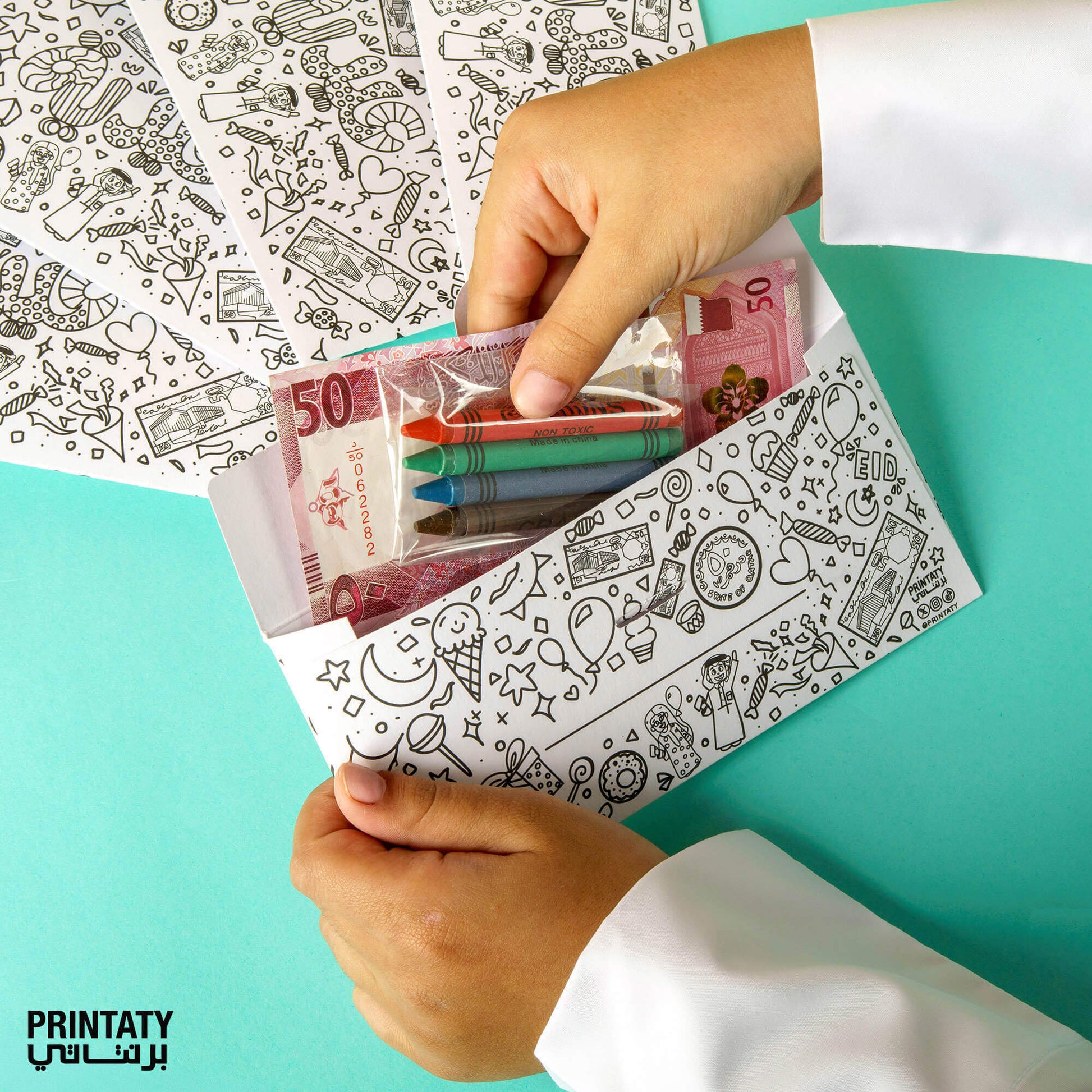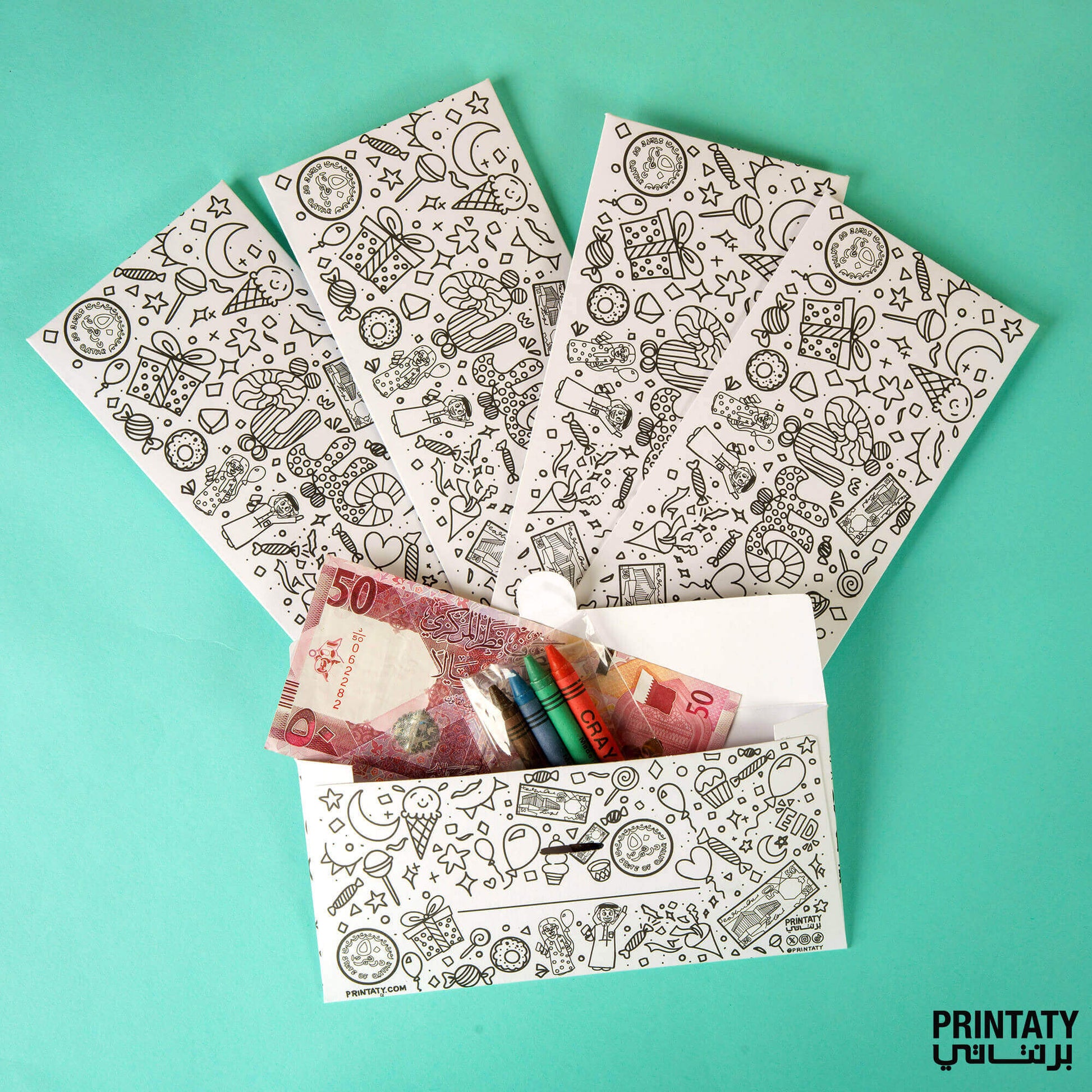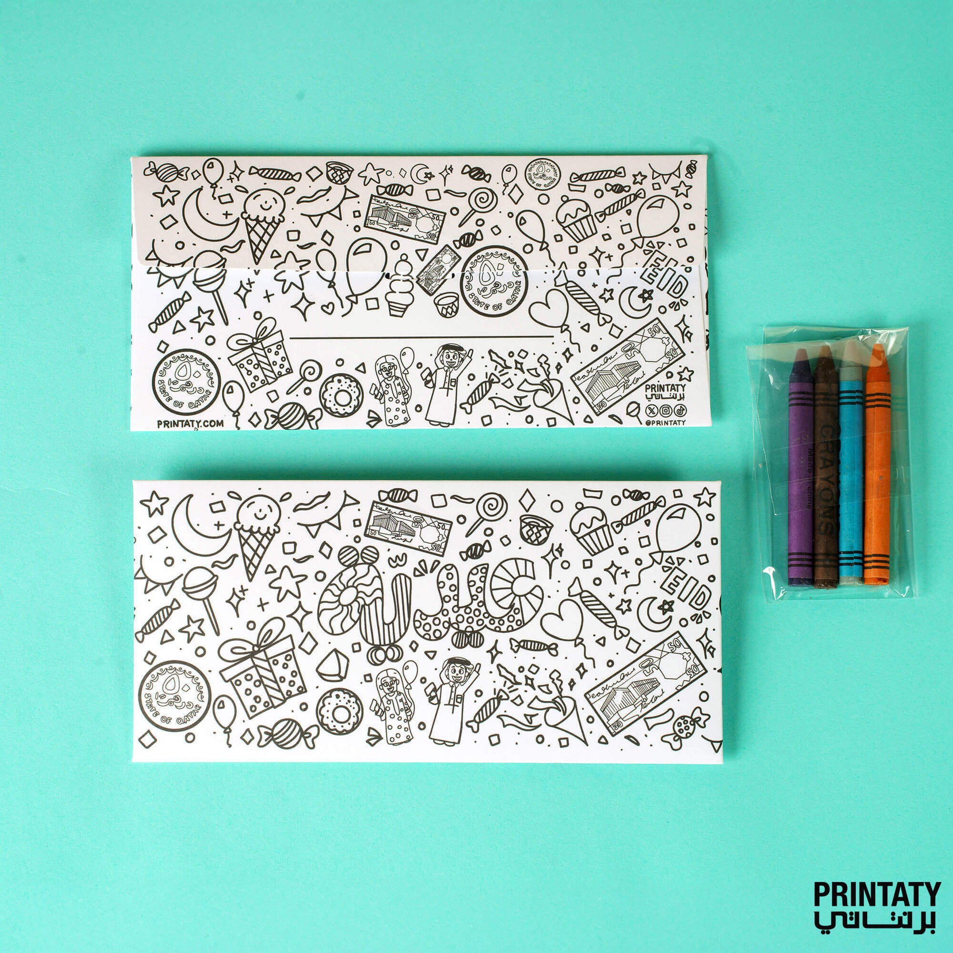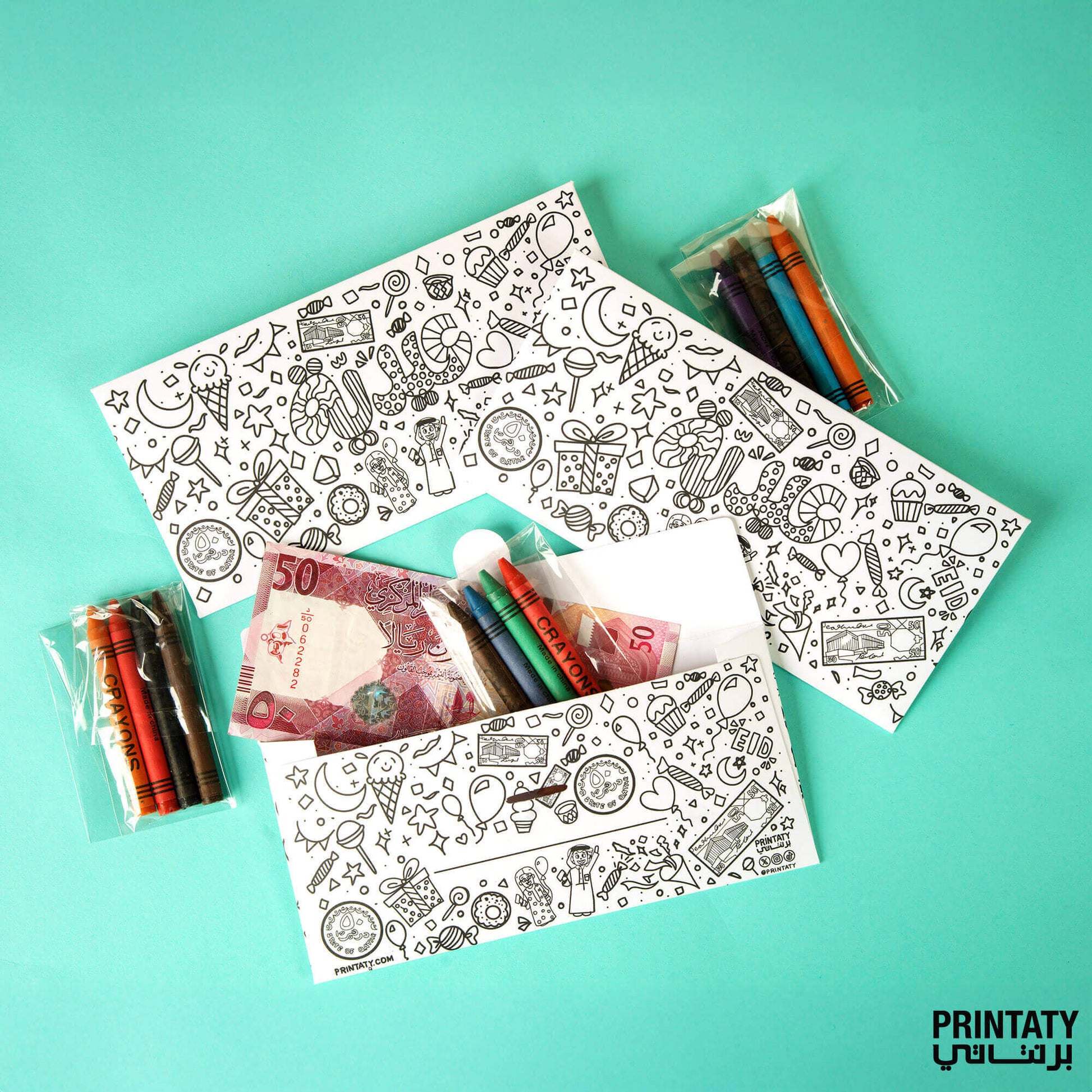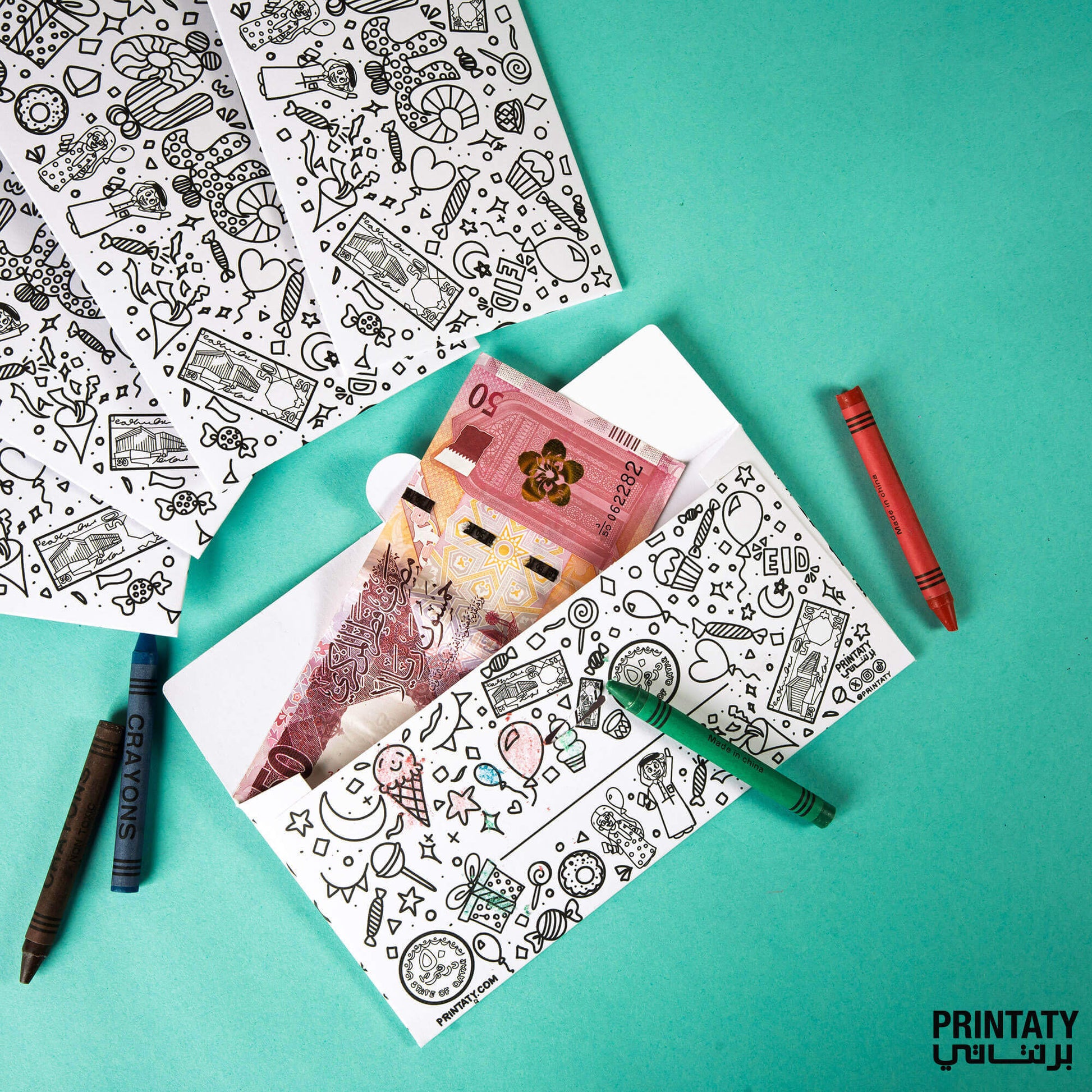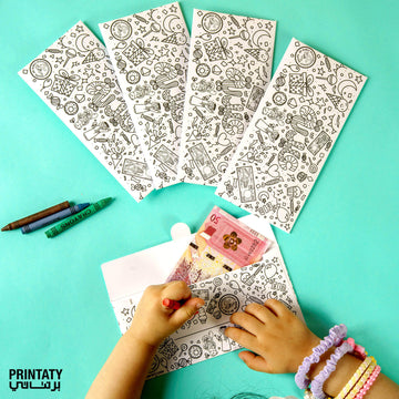 أظرف العيد: ظرف عيدية قابل للتلوين مع ٤ ألوان ( ١٠ بطاقات)