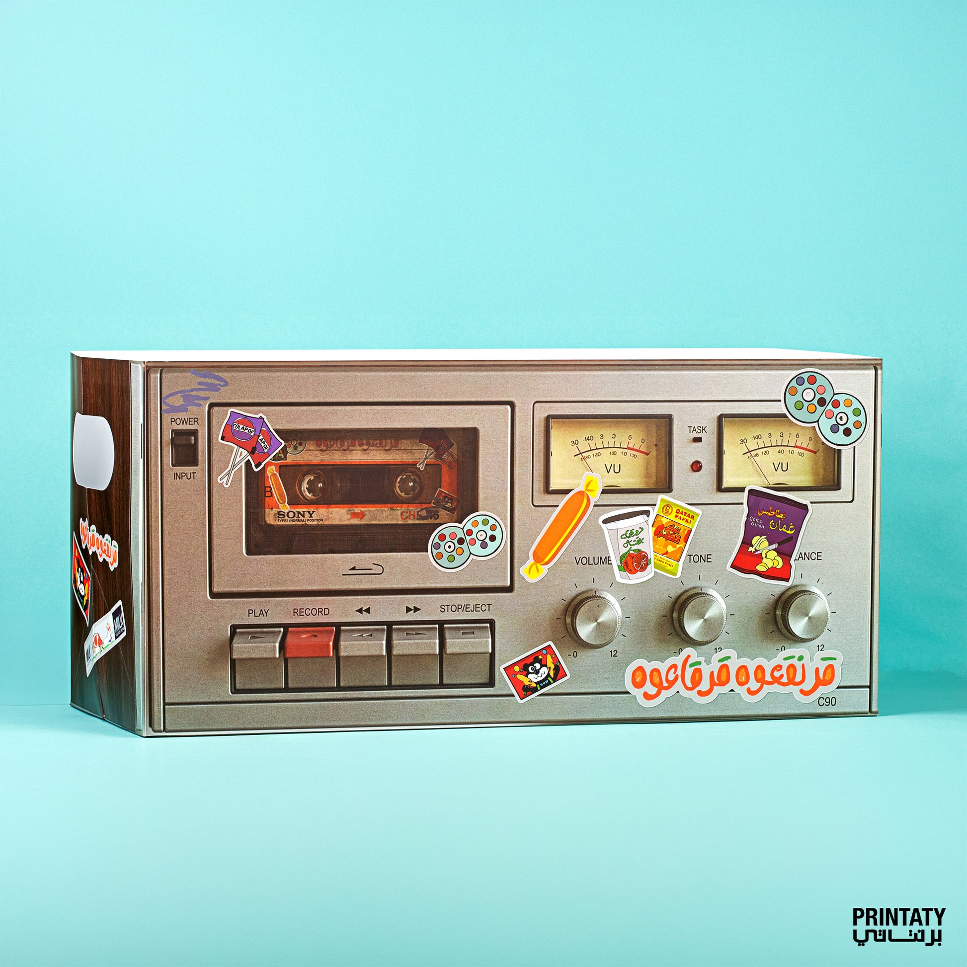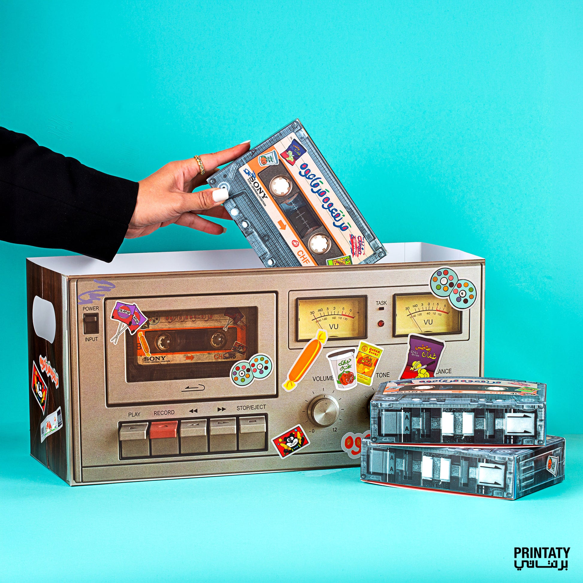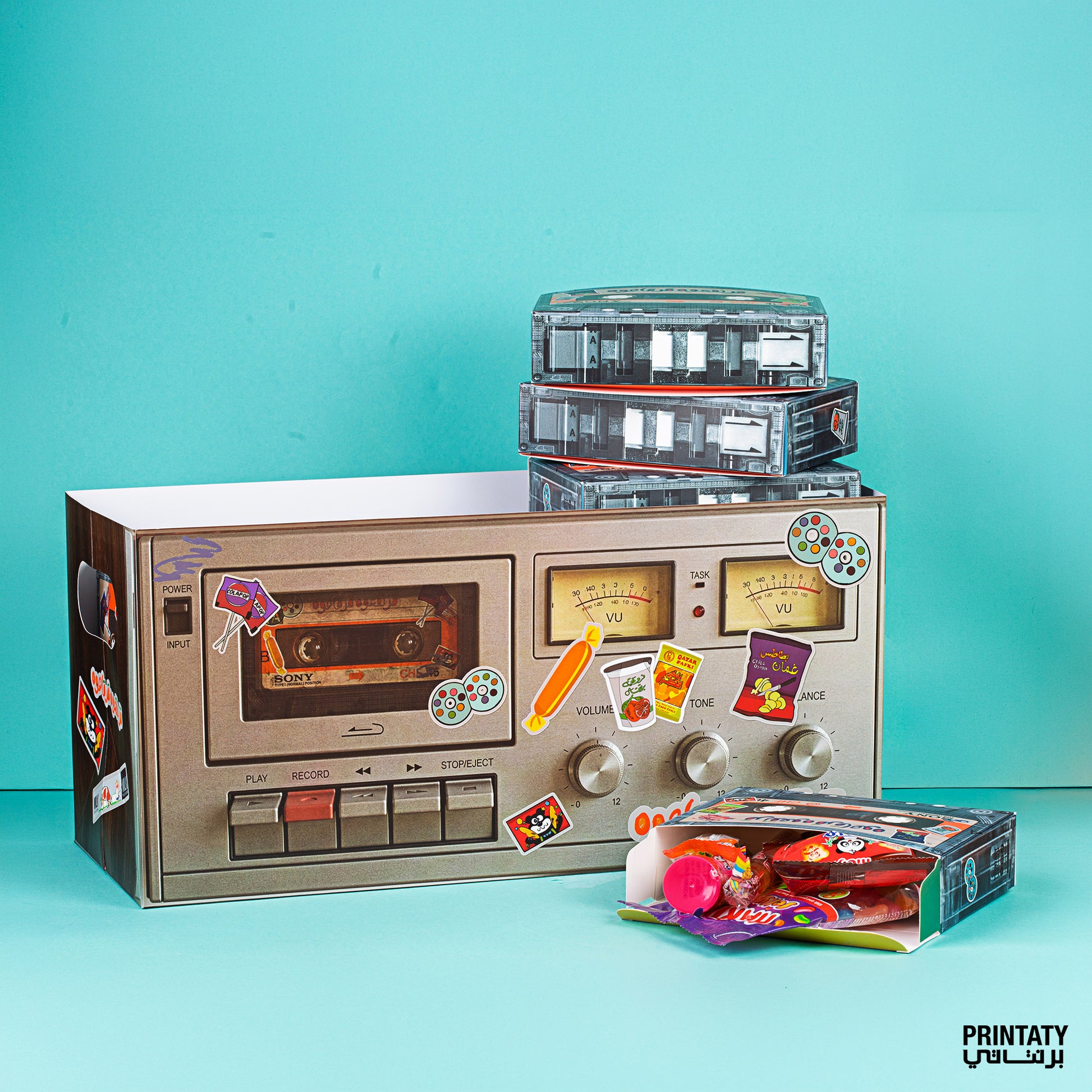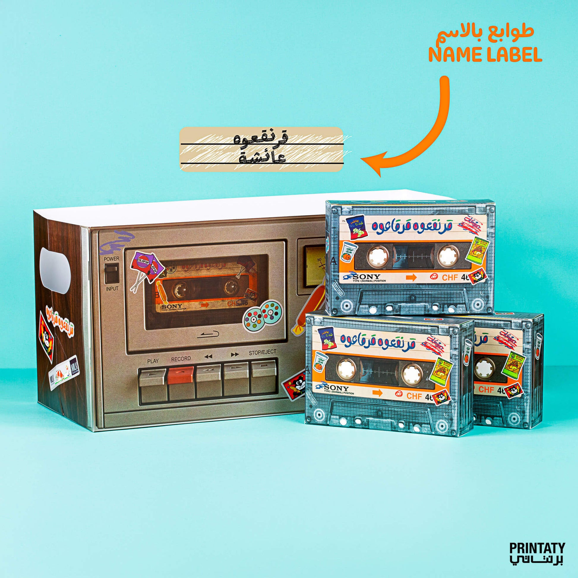 قرنقعوه :أشرطة كاسيت (10 علب) مع علبة كبيرة على شكل مسجل