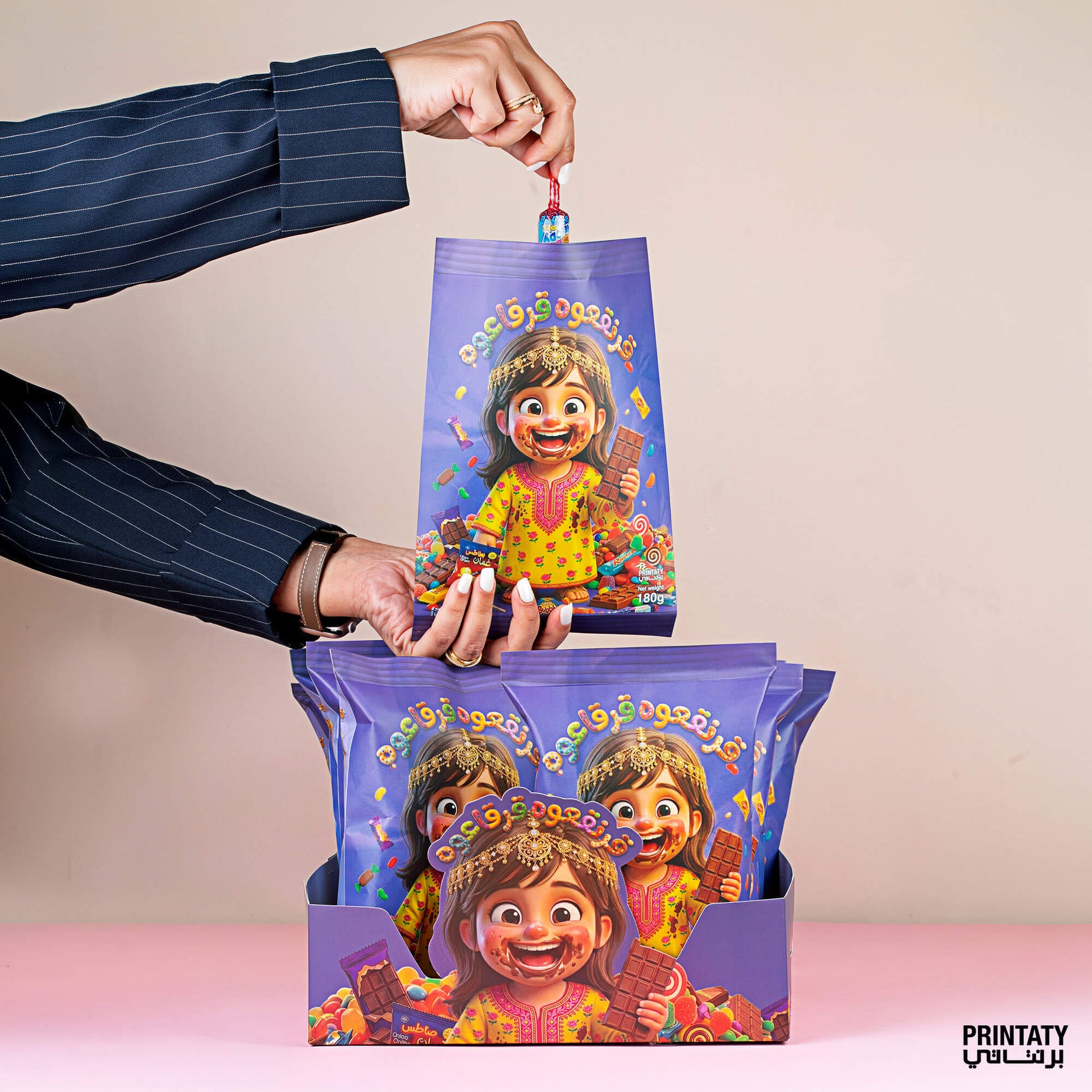 قرنقعوه :آكياس توزيعات البنت (10 أكياس) مع علبة كبيرة