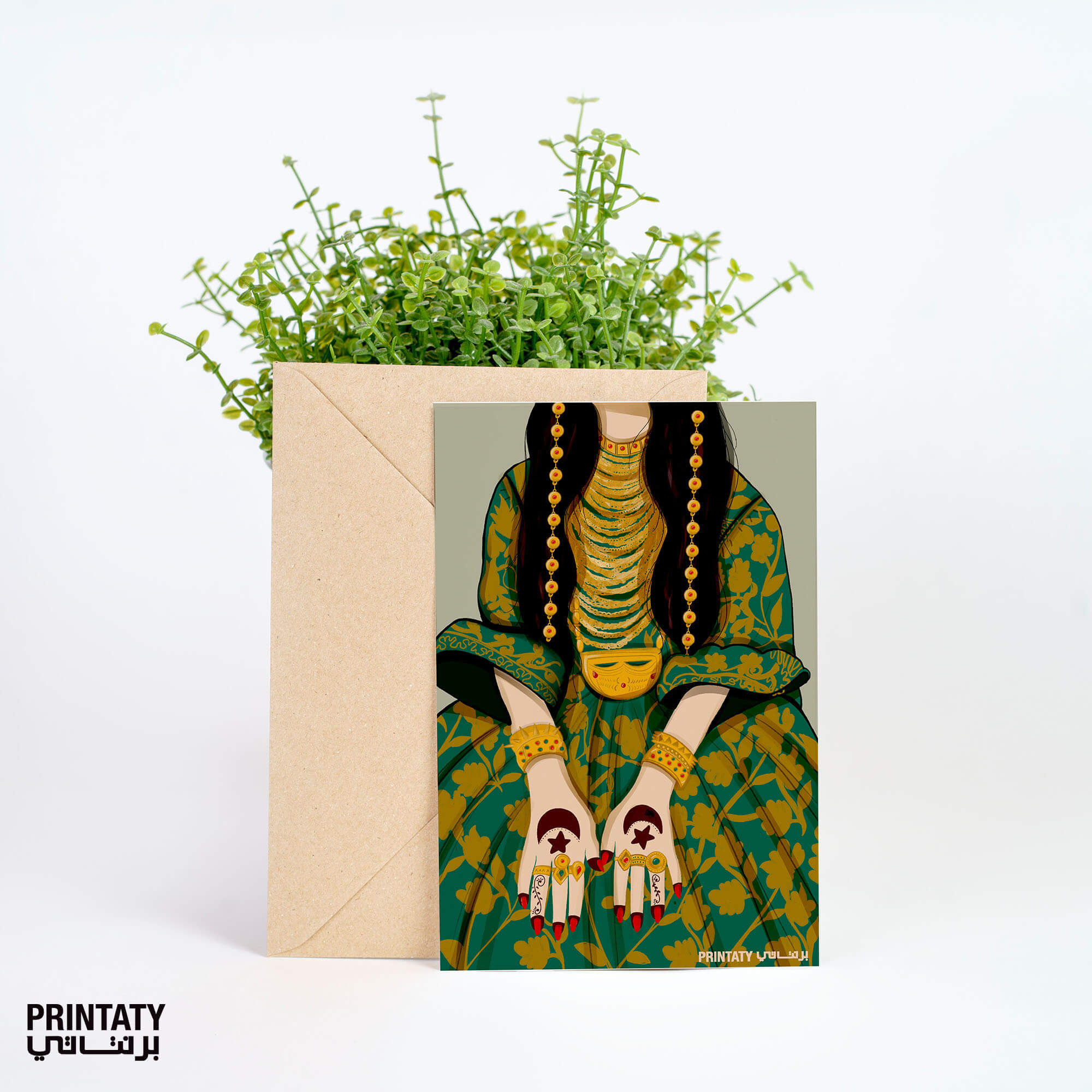 بطاقة بريدية :فتاة بالملابس التقليدية مع الذهب