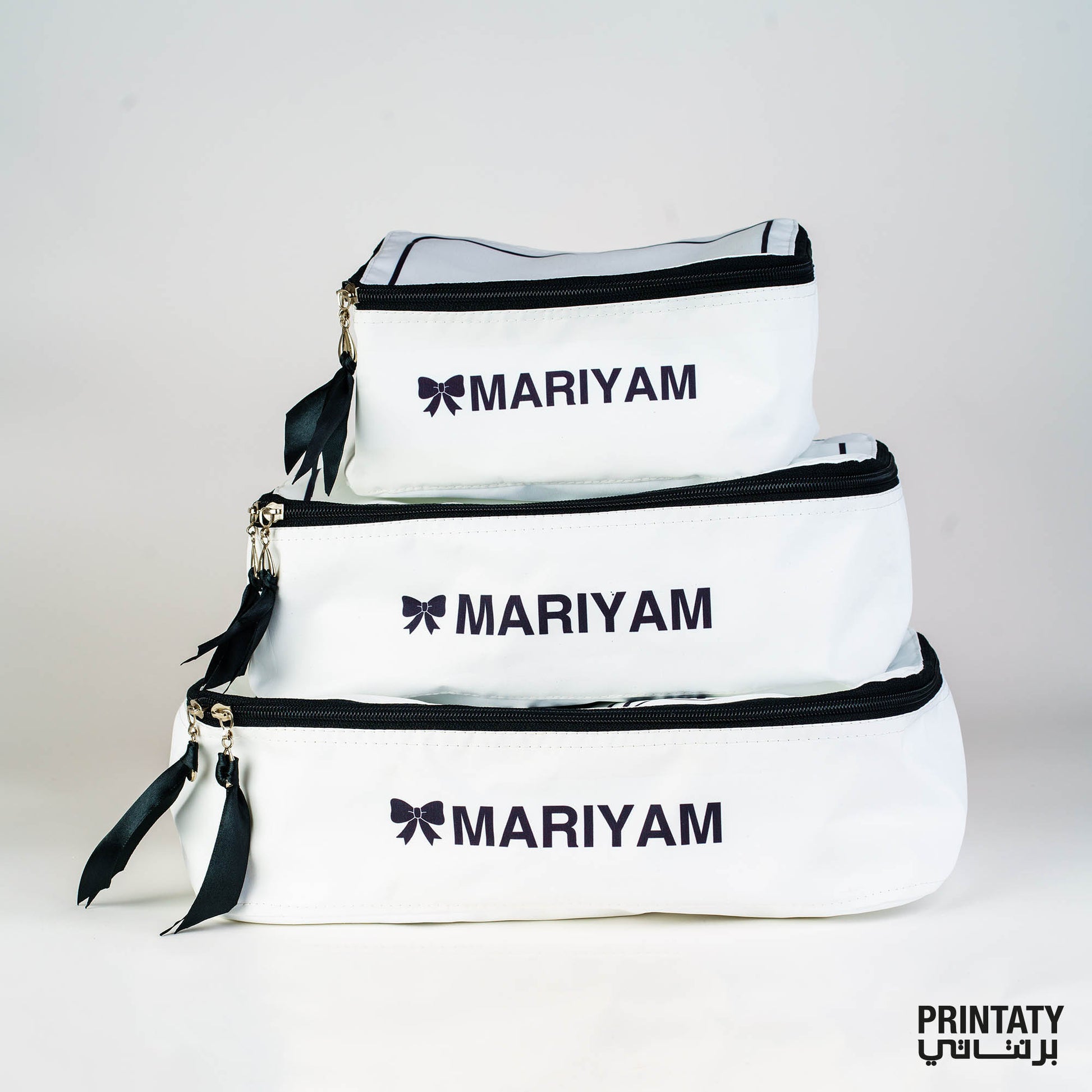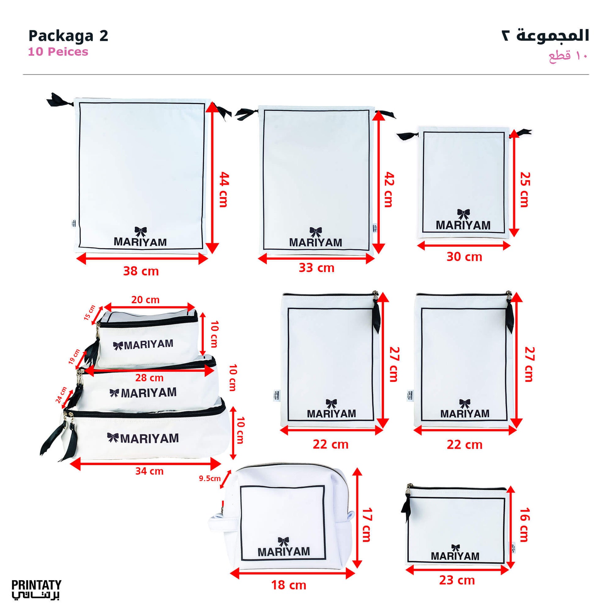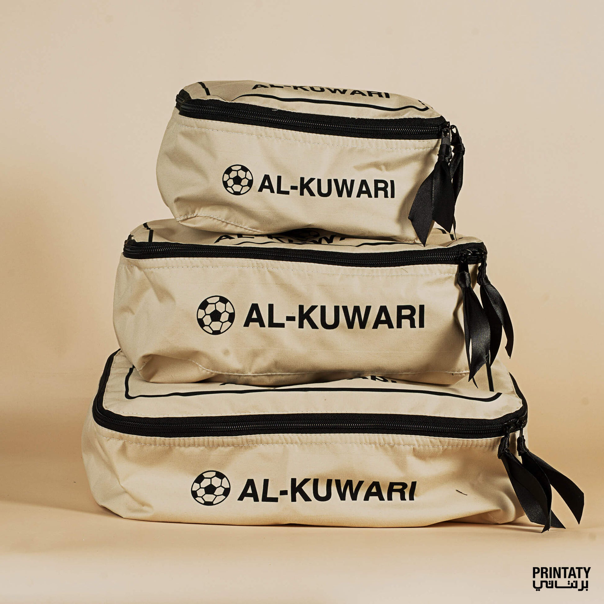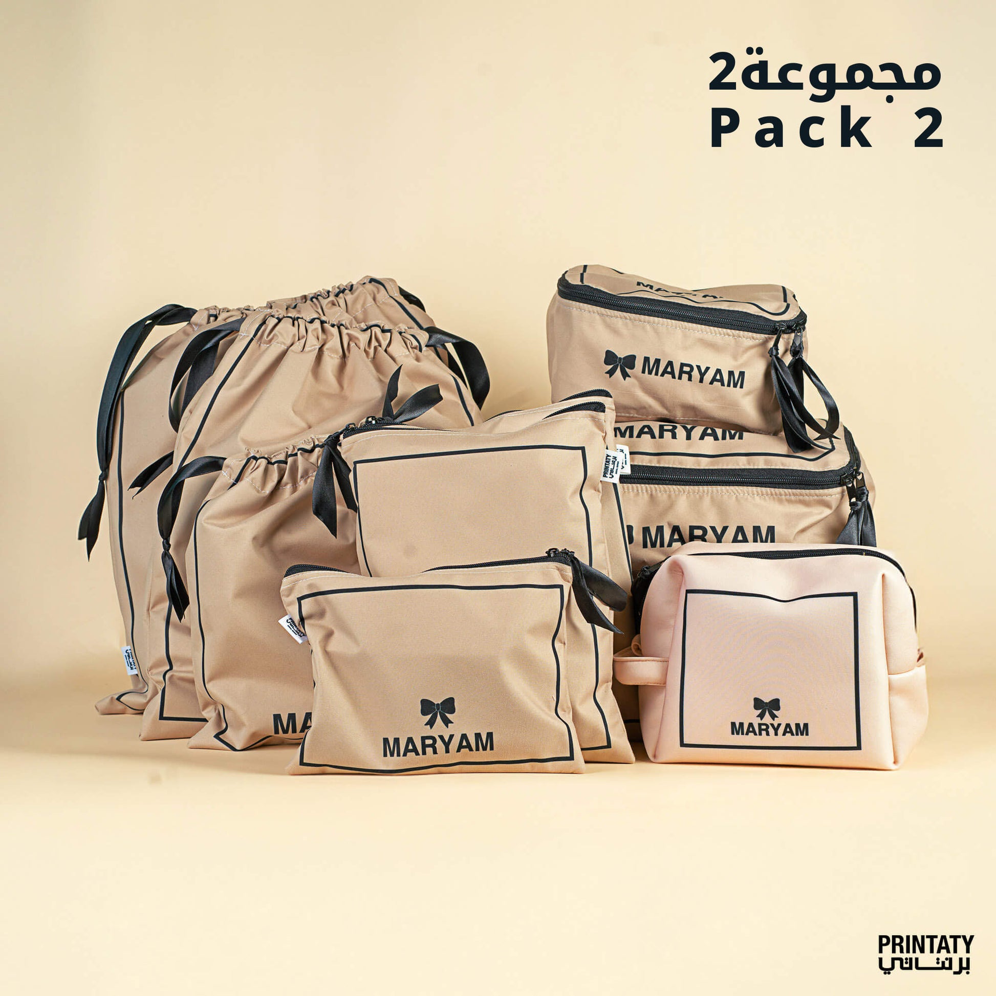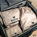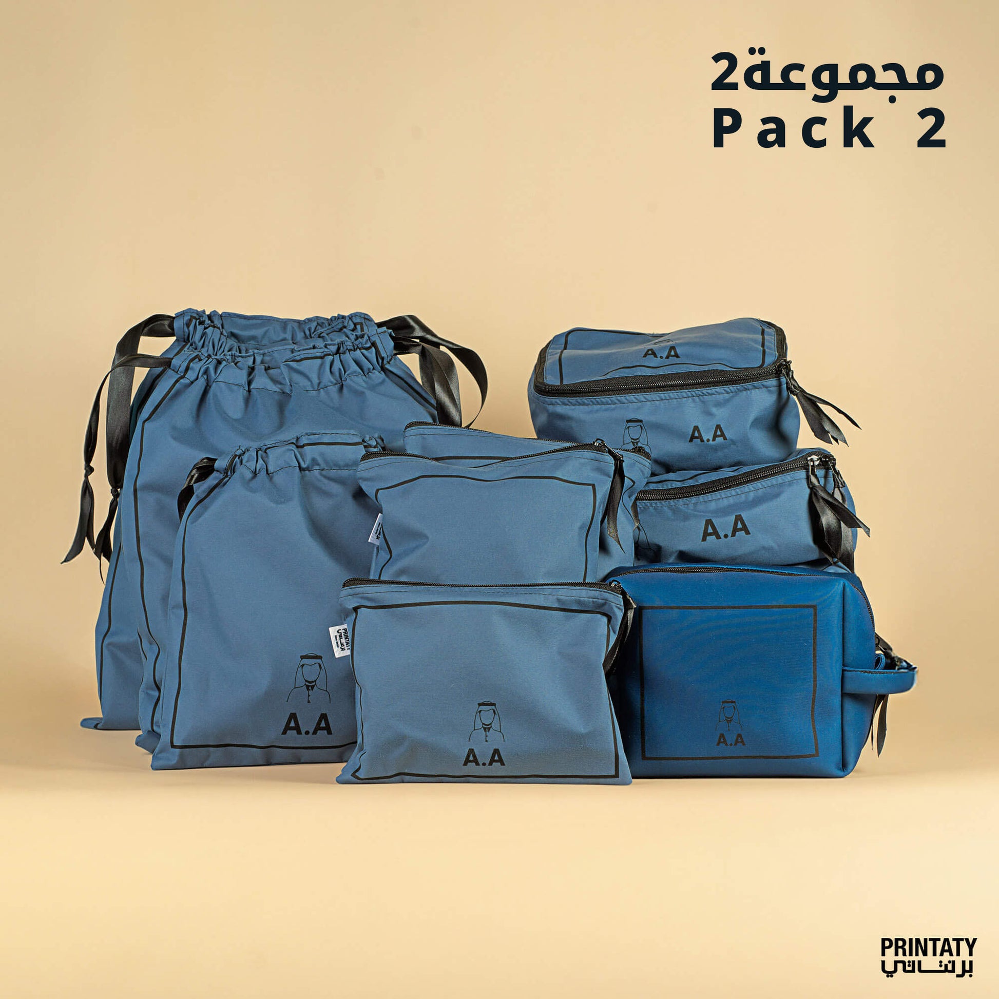 “مجموعة منتظمات سفر قماشية متعددة الأحجام بتصميم مخصص، تشمل منظمات شنط السفر وأكياس تنظيم السفر القماشية لحفظ الملابس والأغراض الشخصية داخل حقيبة السفر. متوفرة كمجموعتين ٥ قطع أو ١٠ قطع، وبخمسة ألوان مع إمكانية طباعة الاسم واختيار الايقونة. مثالية كحقائب قماش بطباعة الاسم أو أكياس ملابس للشنط وإكسسوارات سفر مخصصة لكل المسافرين.”