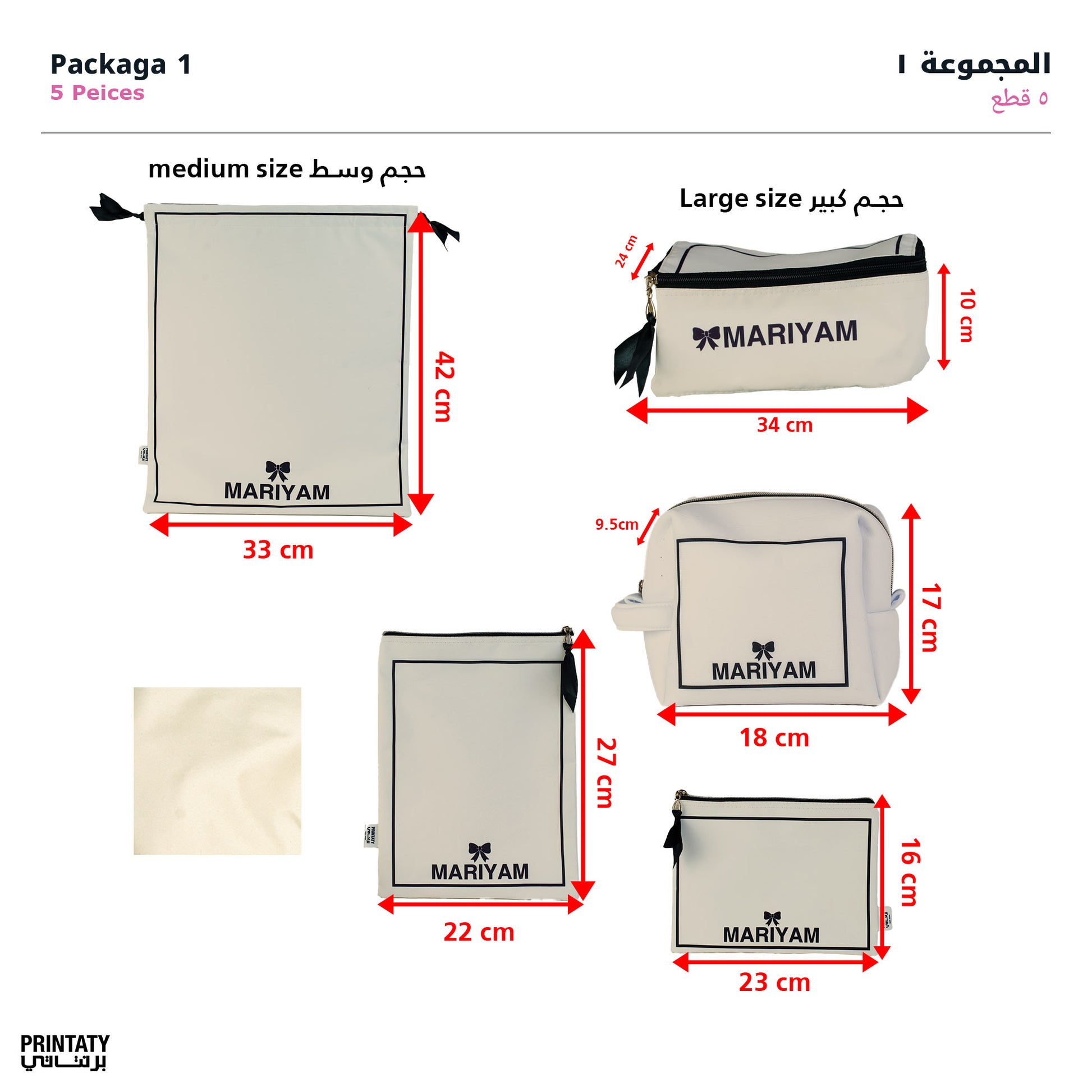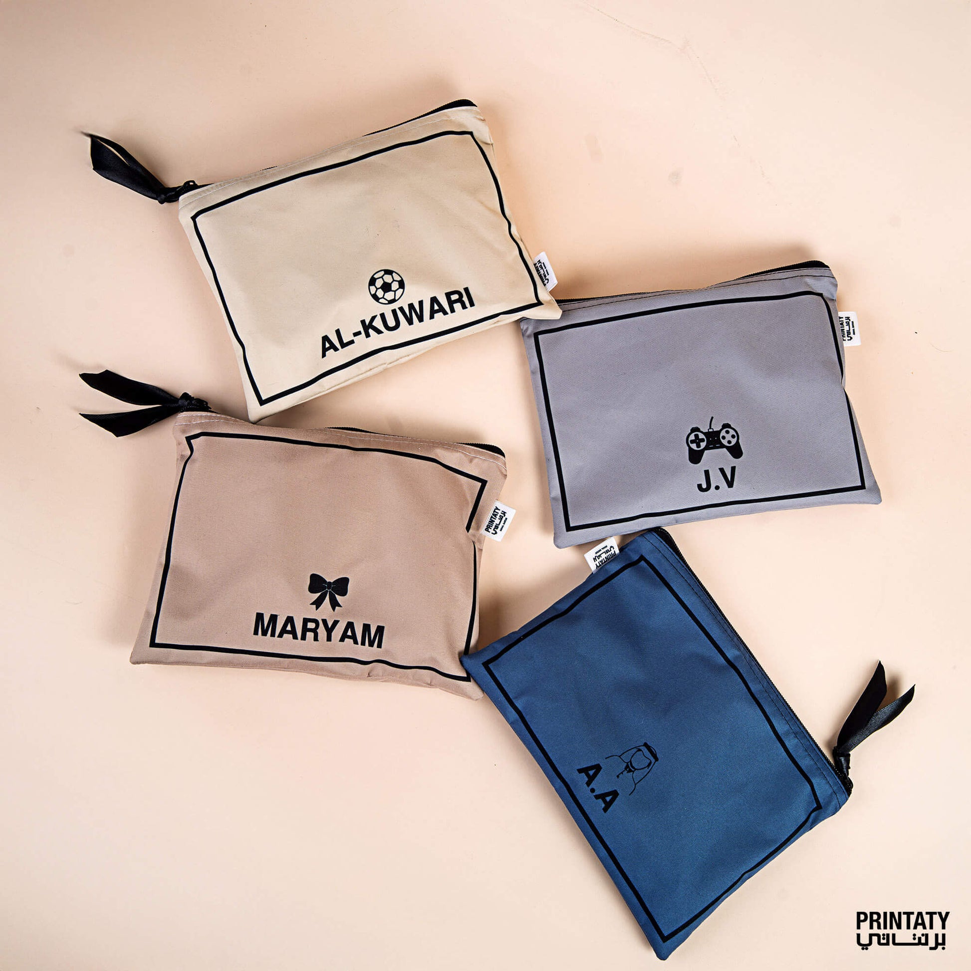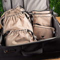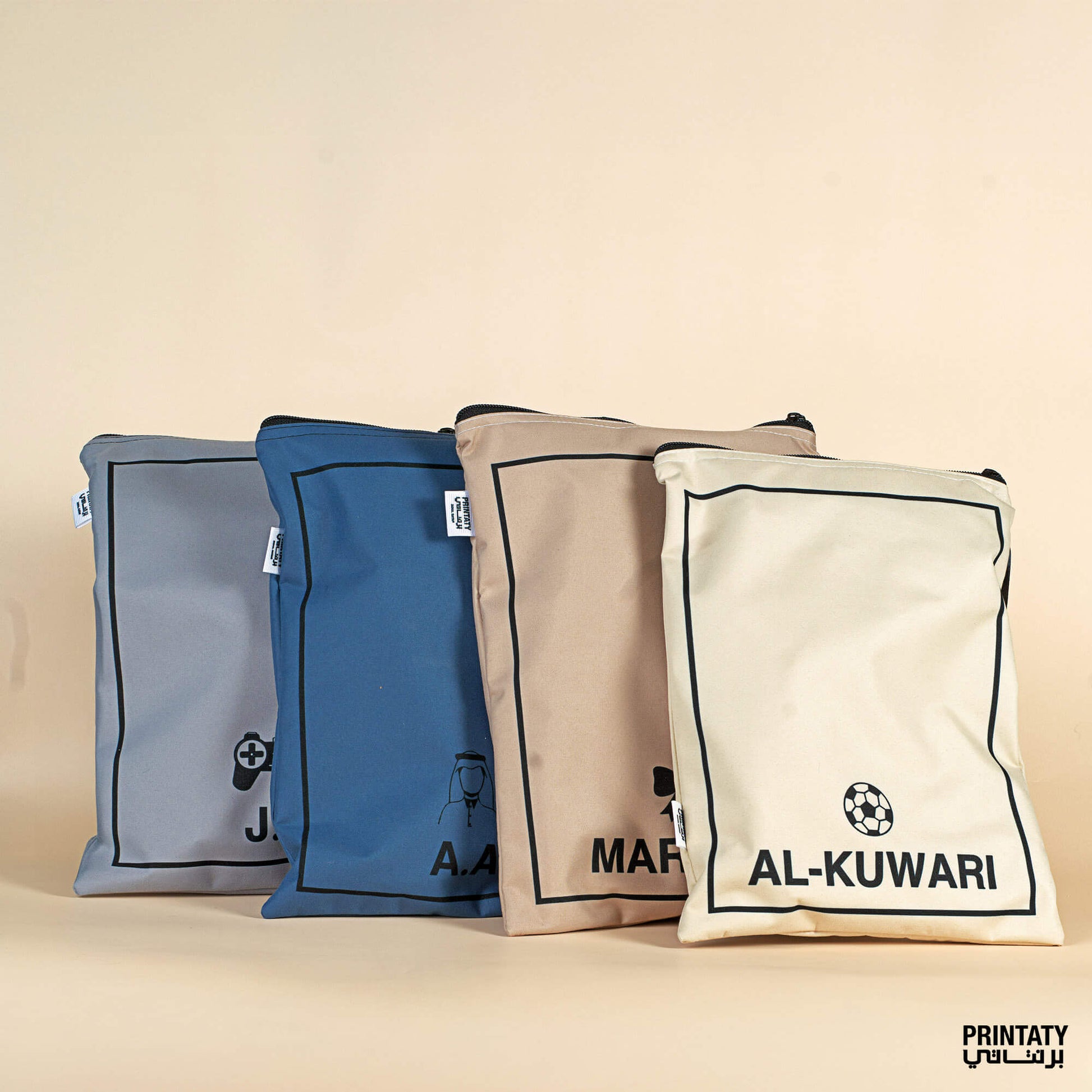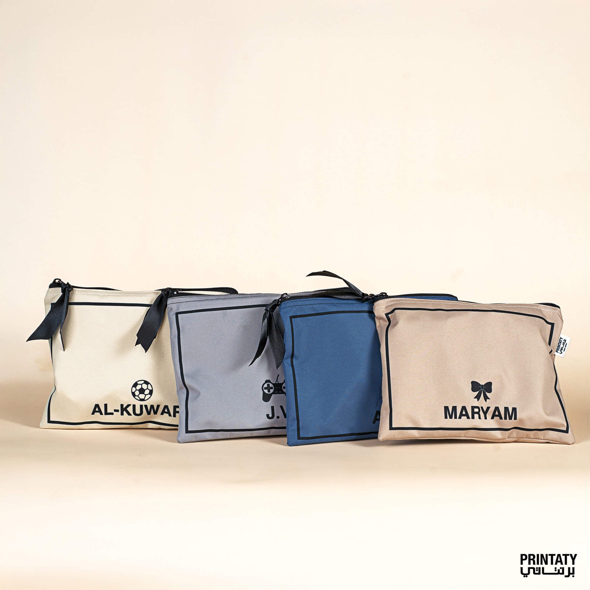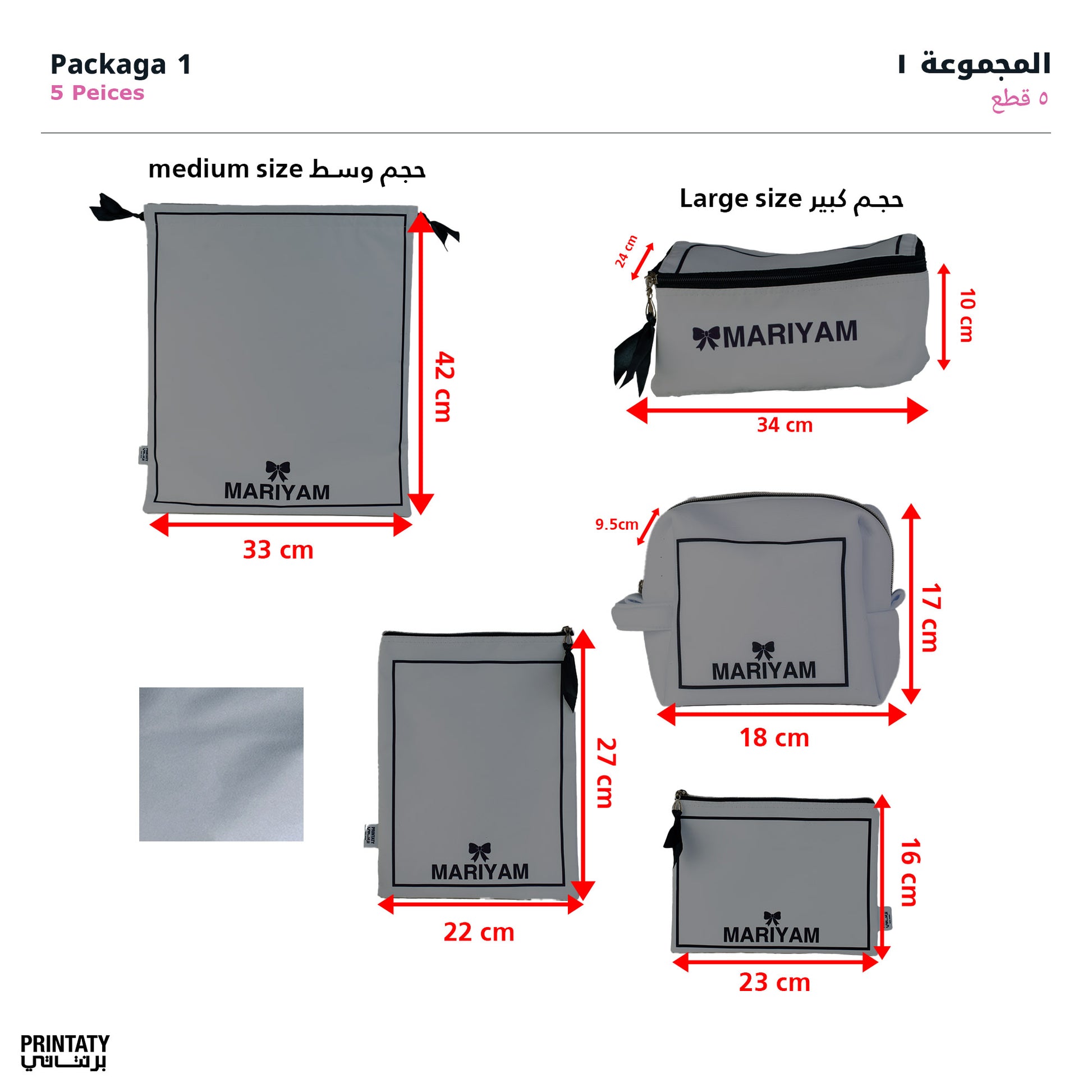 “مجموعة منتظمات سفر قماشية متعددة الأحجام بتصميم مخصص، تشمل منظمات شنط السفر وأكياس تنظيم السفر القماشية لحفظ الملابس والأغراض الشخصية داخل حقيبة السفر. متوفرة كمجموعتين ٥ قطع أو ١٠ قطع، وبخمسة ألوان مع إمكانية طباعة الاسم واختيار الايقونة. مثالية كحقائب قماش بطباعة الاسم أو أكياس ملابس للشنط وإكسسوارات سفر مخصصة لكل المسافرين.”