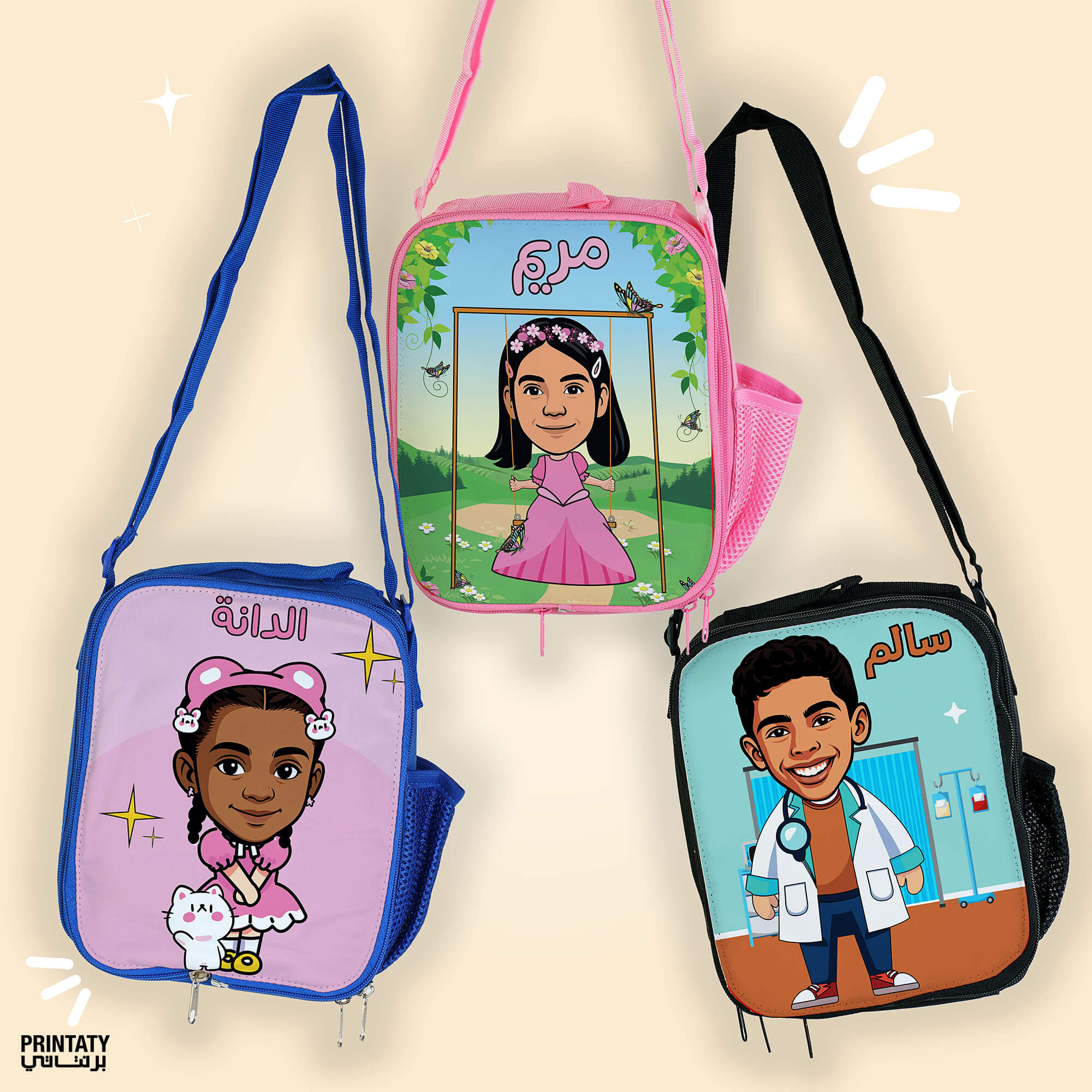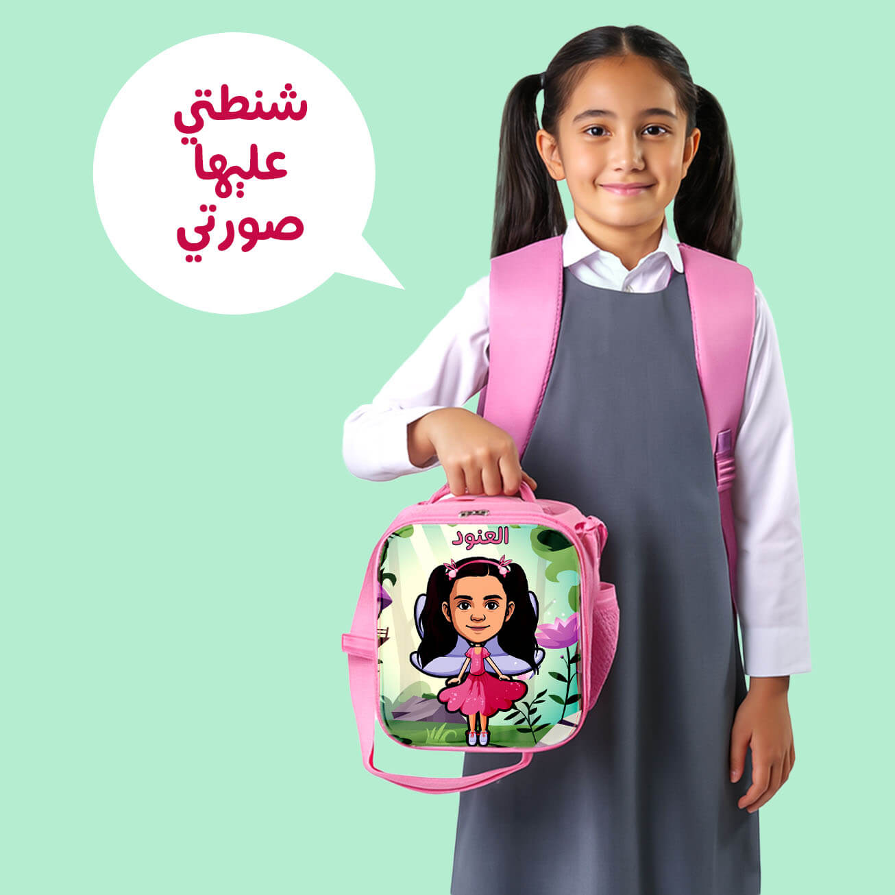 شنطة طعام : تحويل صورة الطفل لشخصيات كرتونية (٤ ألوان )