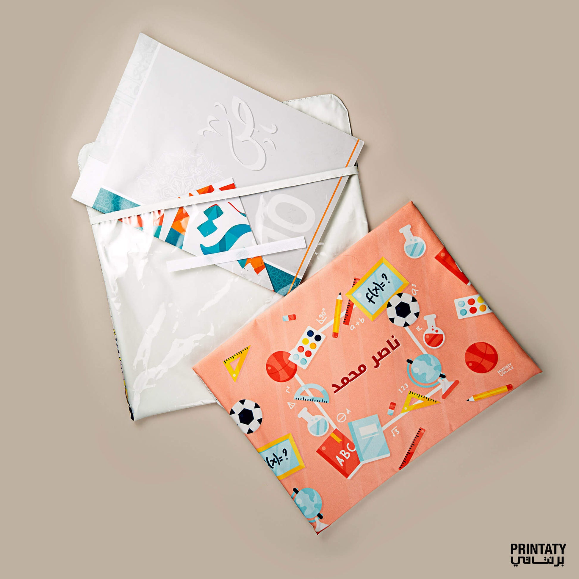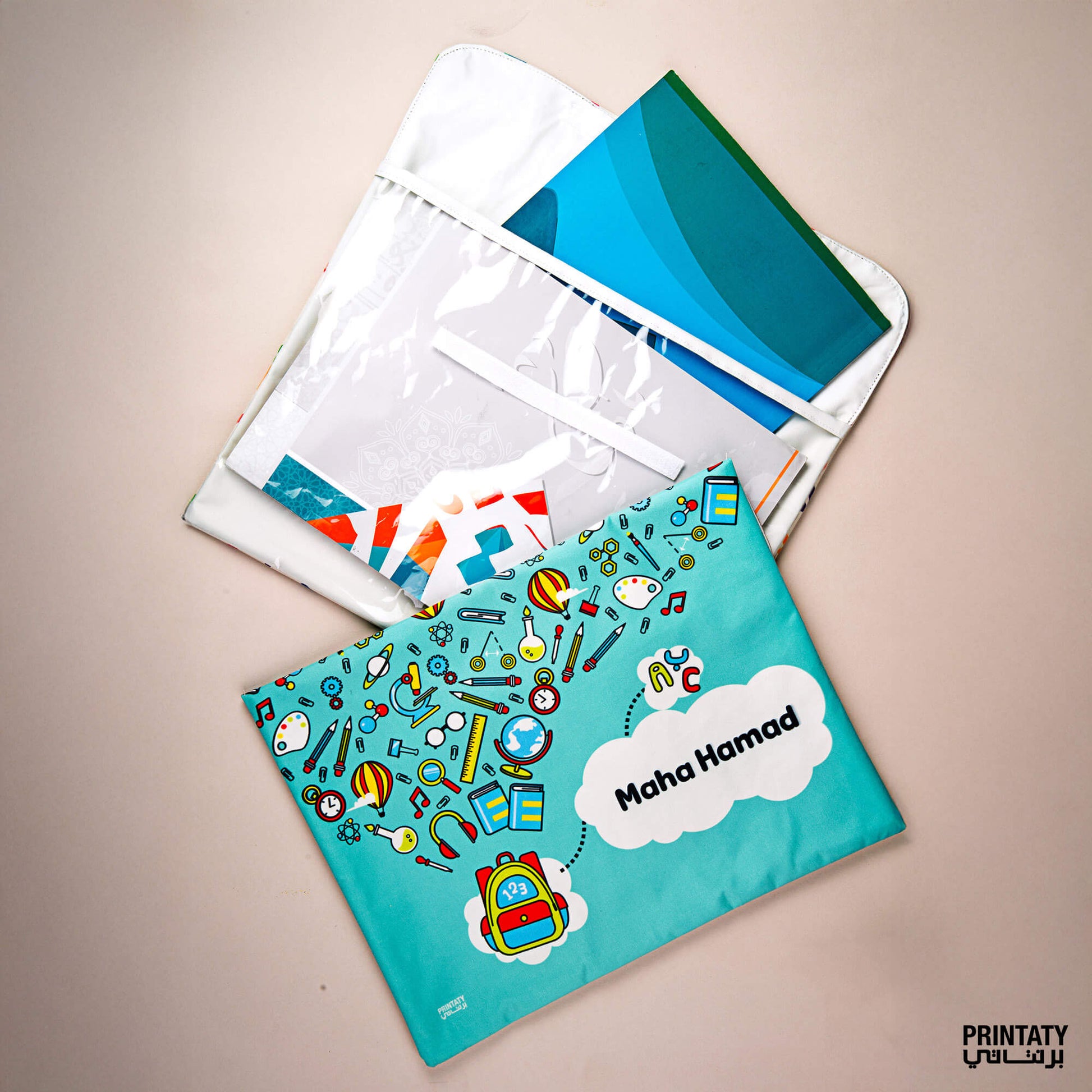 ملف للكتب والدفاتر (10 تصاميم متوفرة) مع طباعة الاسم